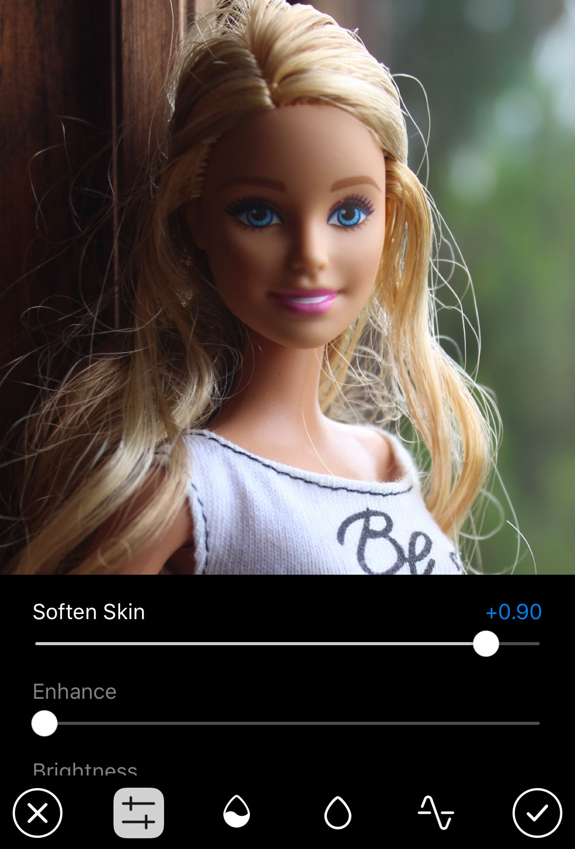 미디어 에디터 관련하여, 정면 카메라로 촬영한 사진이나 비디오는 피부 보정 옵션을 선택할 수 있습니다. 하지만, 이미 멋진 여러분들은 굳이 사용을 안해도 됩니다.