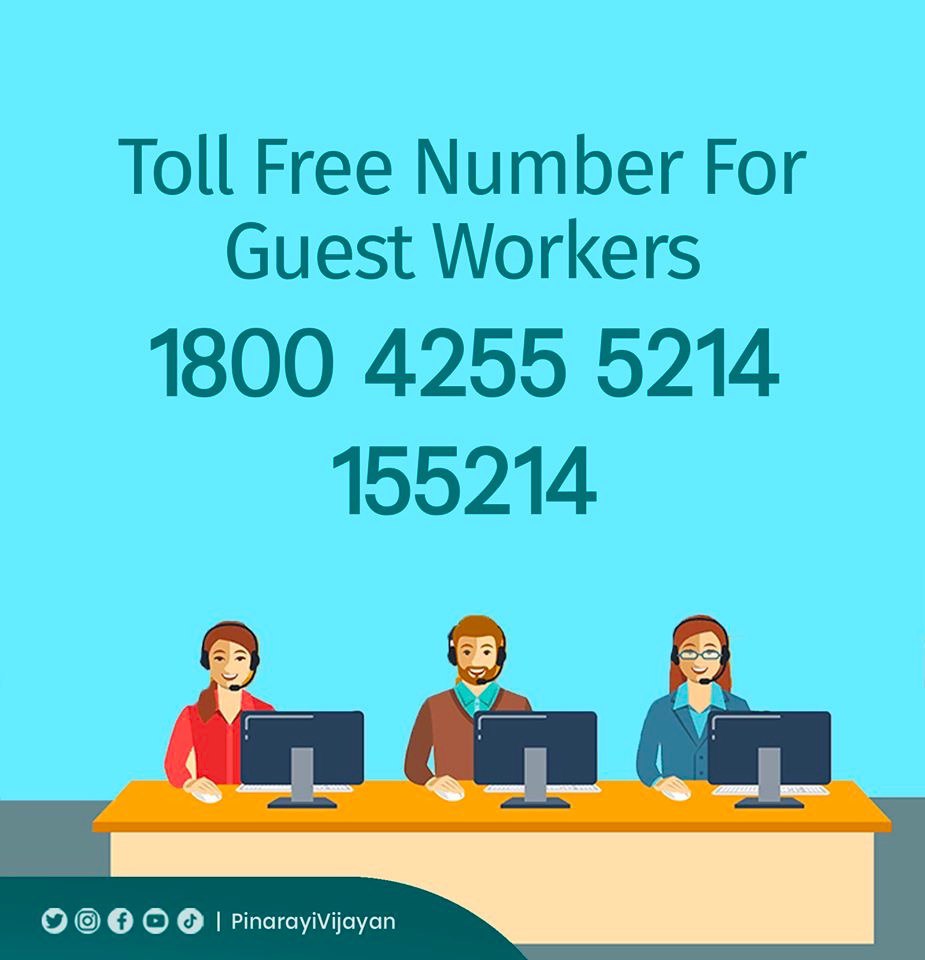 केरल सरकार द्वारा अतिथि मज़दूरों की शिकायतों को सुनने के लिए और उनका समाधान करने के लिए कॉल सेंटर खोला गया है। विभिन्न भाषाओं में आपके शिकायतों और सवालों का जवाब देने में सक्षम सरकारी अधिकारियों को इसकी ज़िम्मेदारी दी गयी है।