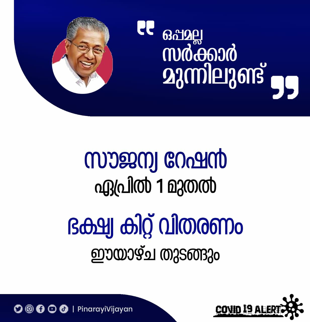 कल कोट्टायम ज़िले के पायीप्पड़ में हमने एक दुखद घटना देखी जब दूसरे राज्यों से अतिथि कामगार इकट्ठे हुए और उन्होंने लॉकडाउन का उल्लंघन किया। जिस समय पूरा देश हर सम्भव तरीके से COVID-19 से लड़ने की कोशिश कर रहा है, उस समय ऐसा किया जाना बिल्कुल अनावश्यक था। केरल राज्य ने अतिथि कामगारों के मुद्दे हमेशा सहनशीलता से उठाए हैं। जैसे ही कोरोना वायरस के खतरे के चलते उनके रोज़गार पर संकट आया वैसे ही हमने उनके लिए खाने और दवाईयों की व्यवस्था की। राज्य भर में 5000 कैम्पों में और उनके आसपास 1,70,000 से ज़्यादा अतिथि कामगार रह रहे हैं। ज़िला कलेक्टरों को सख़्त आदेश दिए गए थे कि इनकी देखरेख की जाए और जो भी कमियाँ हैं उन्हें दूर किया जाए। हम इन्हें 'अतिथि वर्कर' कहते हैं जिससे इनके लिए हमारा लगाव और इज़्ज़त ज़ाहिर है। इनके लिए यहाँ अमूमन कोई