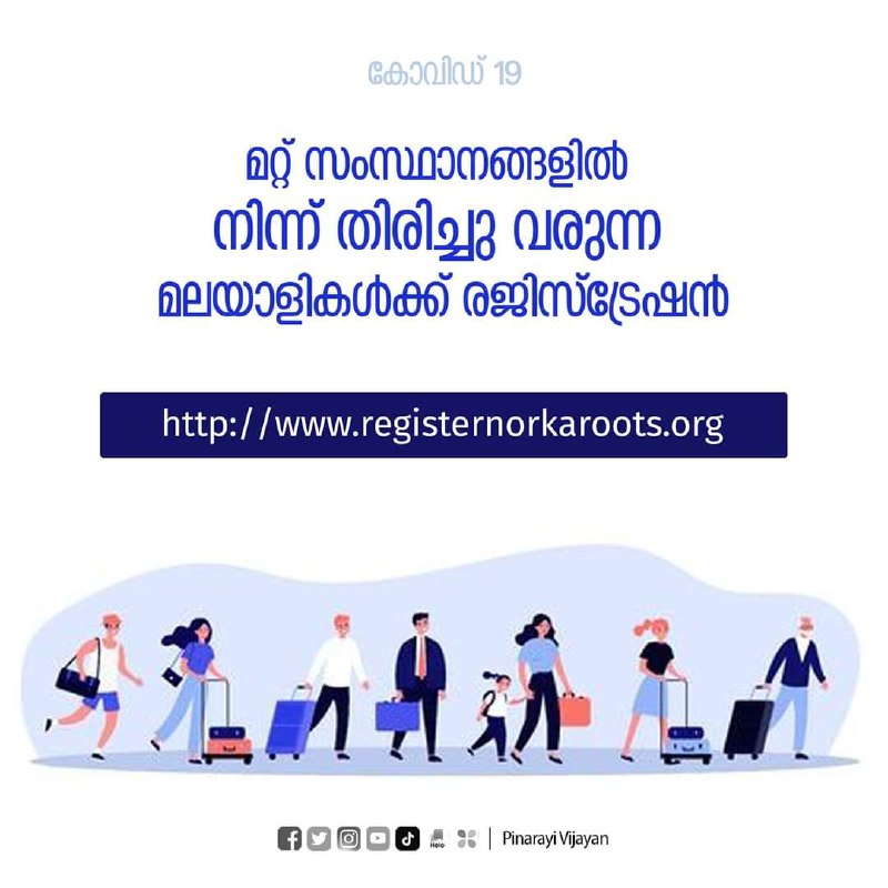മടങ്ങിവരാൻ ആഗ്രഹിക്കുന്ന മറ്റ് സംസ്ഥാനങ്ങളിലെ മലയാളികളുടെ ഓൺലൈൻ രജിസ്ട്രേഷൻ ആരംഭിച്ചു. നോർക്കയുടെ www.registernorkaroots.org