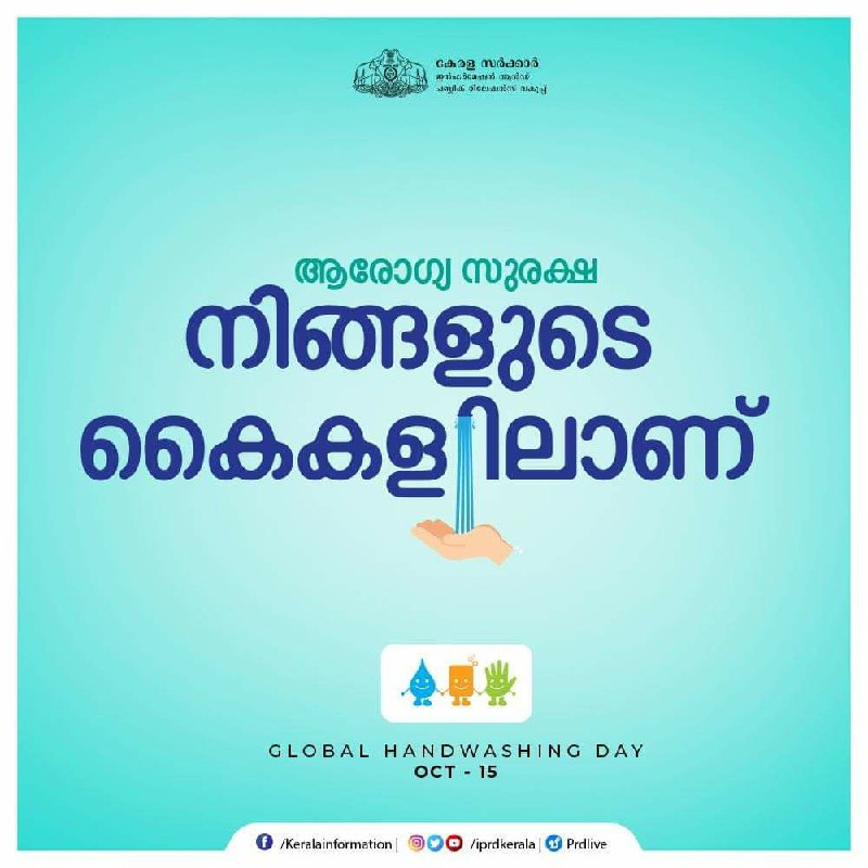 ​​കൈകൾ ഇടയ്ക്കിടെ വൃത്തിയായി കഴുകുക എന്നത് വളരെ നിസ്സാരമായ ഒരു കാര്യമായി നമുക്ക് തോന്നിയേക്കാം. എന്നാൽ സാംക്രമിക രോഗങ്ങളെ അകറ്റി നിർത്തി നമ്മുടെ ആരോഗ്യം സംരക്ഷിക്കുന്നതിനായി ചെയ്യേണ്ട ഏറ്റവും പ്രധാനപ്പെട്ട കാര്യമാണതെന്ന് നമ്മളിൽ പലർക്കും അറിയില്ല. അതിനാൽ ശാസ്ത്രീയമായ രീതിയിൽ കൈ കഴുകുന്നതിൻ്റെ പ്രാധാന്യം ലോകത്തെ ബോധ്യപ്പെടുത്തുന്നതിനാണ് ഇന്നത്തെ ദിനം ഗ്ലോബൽ ഹാൻ്റ് വാഷിംഗ് ഡേ ആയി ആചരിക്കുന്നത്. കോവിഡ് മഹാമാരിയുടെ പശ്ചാത്തലത്തിൽ കൈകൾ ശുചിയായി സൂക്ഷിക്കേണ്ടത് നമ്മുടെ ജാഗ്രതയുടെ അനിവാര്യ ഘടകമായി മാറിയിരിക്കുകയാണ്. അതുകൊണ്ട് കൈകൾ ഇടയ്ക്കിടെ സോപ്പുപയോഗിച്ച് വൃത്തിയായി കഴുകാൻ എല്ലാവരും നിർബന്ധമായും ശ്രദ്ധിക്കുക. ഇന്നത്തെ ദിവസത്തിൻ്റെ സന്ദേശം എല്ലാവരിലേയ്ക്കും പകരുക. കൈകൾ ശുചിയാക്കി, മാസ്ക് ധരിച്ച്, അകലം പാലിച്ച് നമുക്ക് കോവിഡിനെ പ്രതിരോധിക്കാം. നമ്മുടെ ആരോഗ്യം കാത്തു സൂക്ഷിക്കാം.