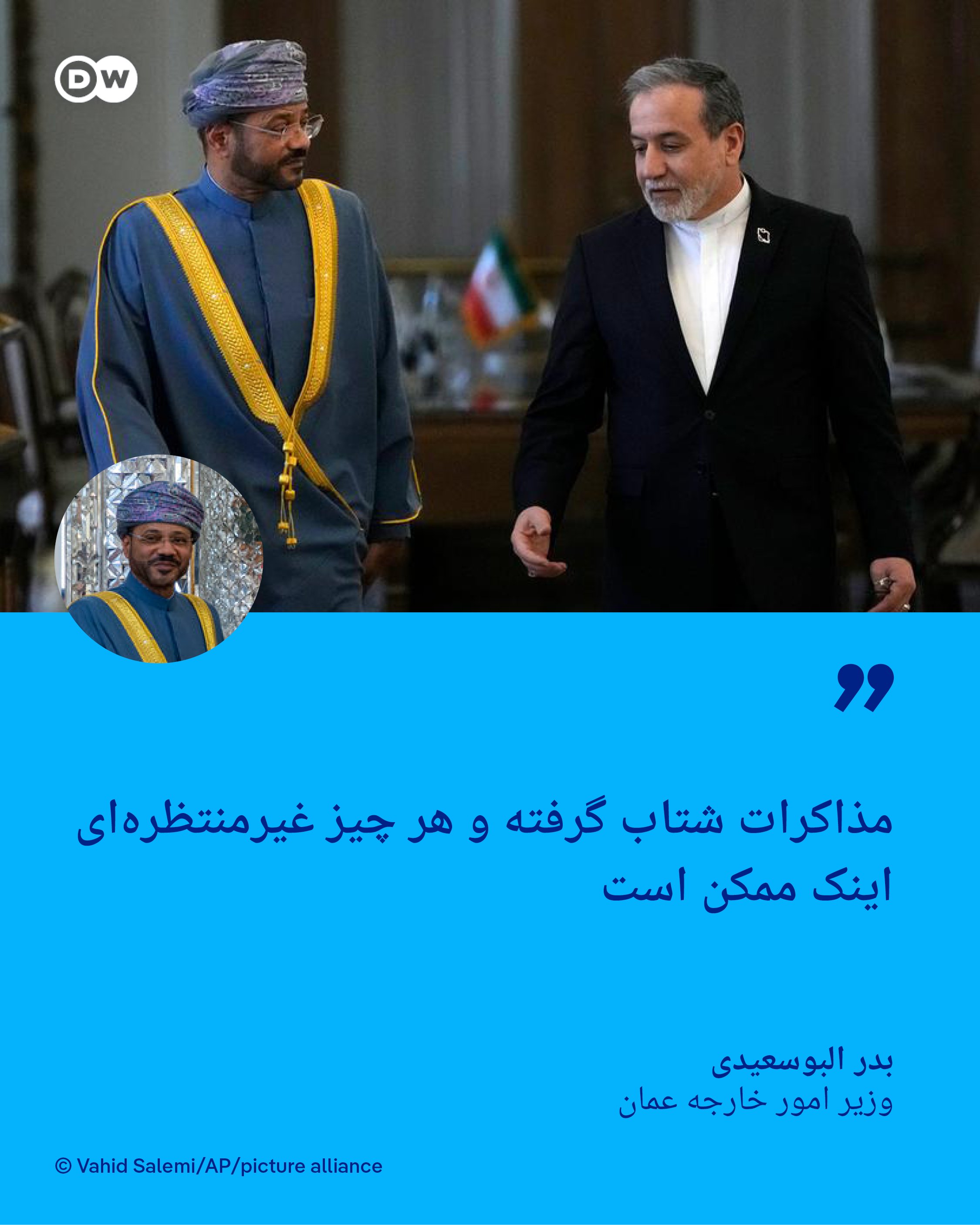 بدر البوسعیدی، وزیر امور خارجه عمان با انتشار پستی در حساب کاربری خود در شبکه اجتماعی اکس (توییتر سابق) با سپاسگزاری از عباس عراقچی؛ وزیر خارجه جمهوری اسلامی و استیو ویتکاف، فرستاده ویژه ترامپ برای مذاکره اتمی با حکومت ایران، و قدردانی از "رویکرد سازنده" آنها به مذاکرات نوشت: «روند مذاکرات شتاب گرفته و اکنون حتی احتمالات بعید نیز ممکن به نظر میرسند.»