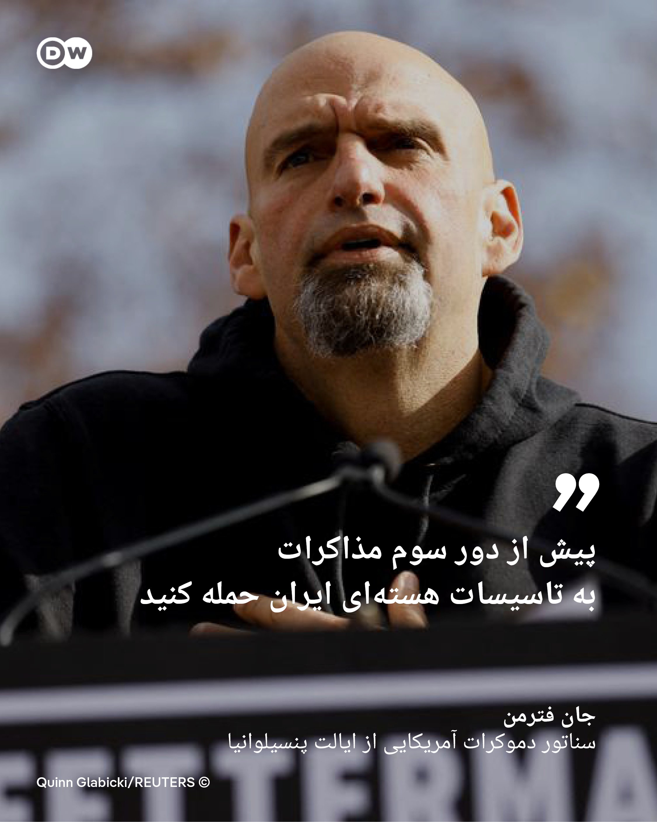 دور سوم مذاکرات تهران و واشنگتن در حالی قرار است روز شنبه، ۲۶ آوریل در مسقط، پایتخت عمان برگزار شود که جان فترمن، سناتور دموکرات آمریکایی از ایالت پنسیلوانیا از دونالد ترامپ خواسته "پیش از آغاز این گفتوگوها" به تاسیسات هستهای ایران حمله و آنها را نابود کند.