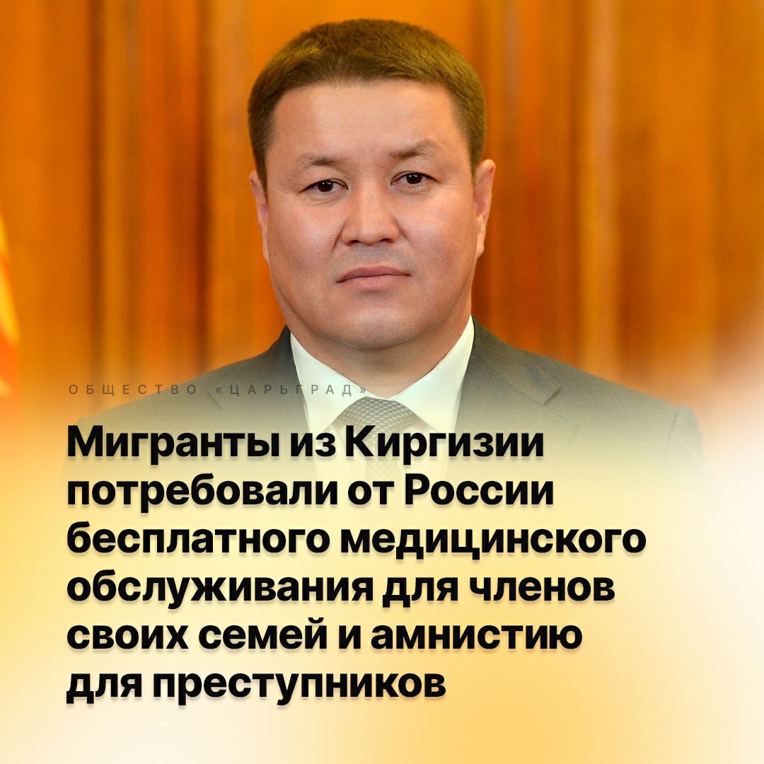 Председатель киргизского парламента Талант Турдумаматович Мамытов хочет пролоббировать бесплатное медицинское обслуживание в России для родственников мигрантов из его страны, а так же масштабную амнистию для преступников из Киргизии.