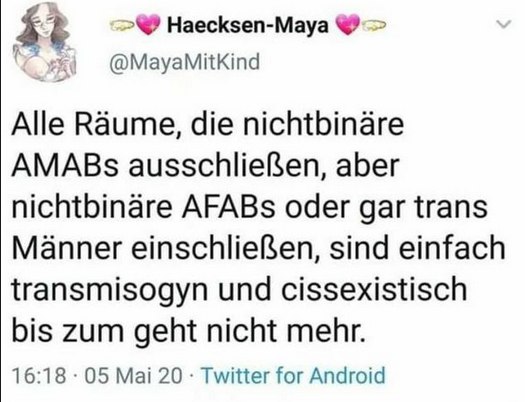 Transphober Cisfaschist, wer keine Ahnung hat, wovon die labert.
