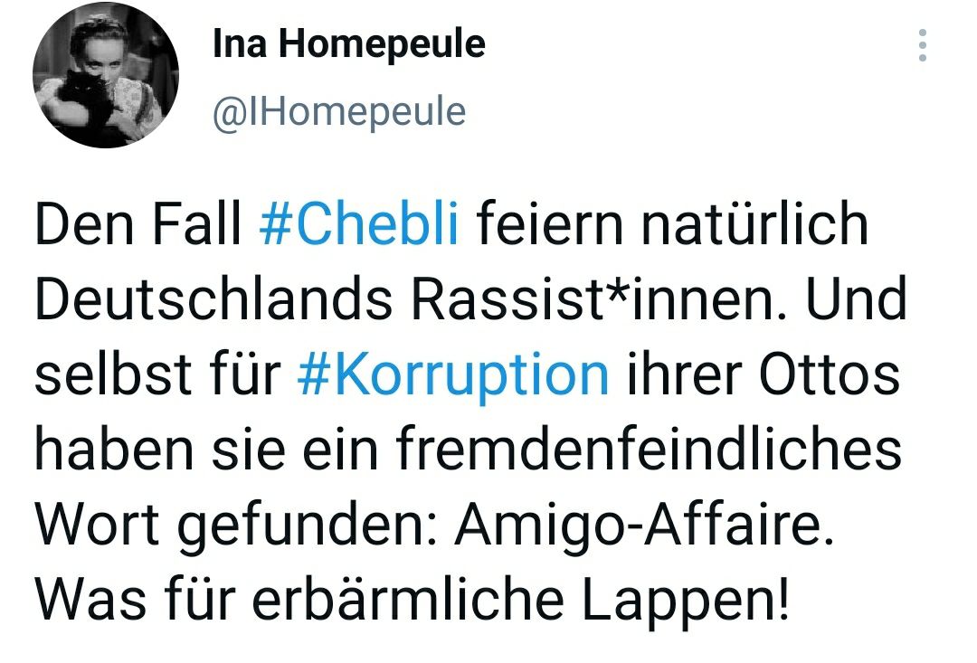 "Oh, Chebli in Korruptionsskandal verwickelt. Wetten, ich finde in 30 Sekunden den ersten Rassismusvorwurf?"
