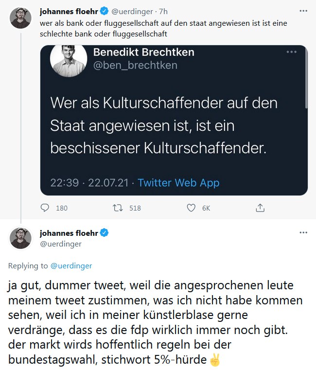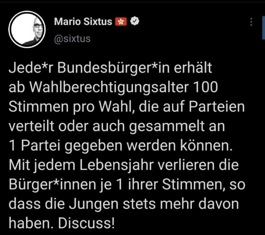 ​​Sixtus wird übrigens mit der "Demokratieabgabe" zwangsfinanziert. Hier sinniert er, wie die Grünen trotz medialem Dauerbeschuss eine absolute Mehrheit erlangen können - auf die totalverblödete Jugend, die jede Netflixserie und jedes Pokemon auswendig, aber den Text der Nationalhymne nicht kennt und deren enthirnter Schwamm unter der Schädeldecke empfänglich für Sozialismus ist, können Grüne schließlich bauen.