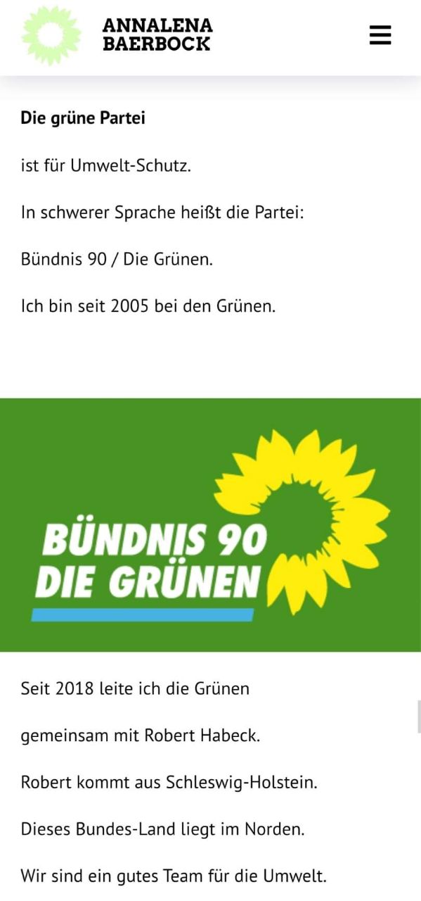 ​​Annerlener hat ihr Profil auf der Homepage der Grünen dem Intellekt ihrer Anhängerschaft angepasst.