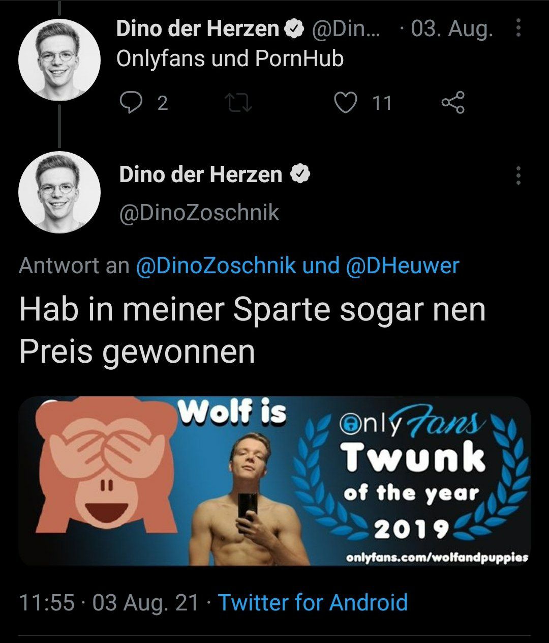 Auf Twitter hat man Pädo Dinos Onlyfans(!) entdeckt, in denen er Schwulenpornos gemacht hat.