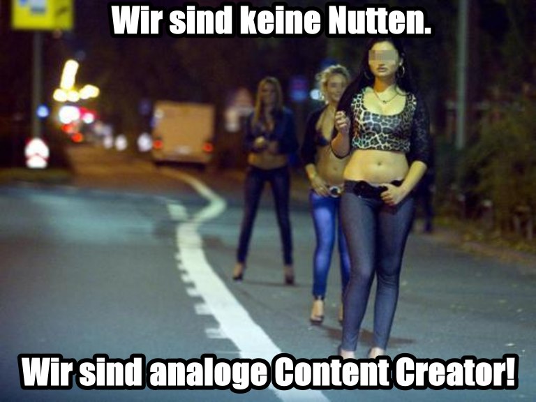 Wenn Onlyfans-Huren sich verbitten, als Huren bezeichnet zu werden, weil Fotos vom Wurstfach zeigen "Arbeit" sei und sie sich als "Content Creator" bezeichnen.
