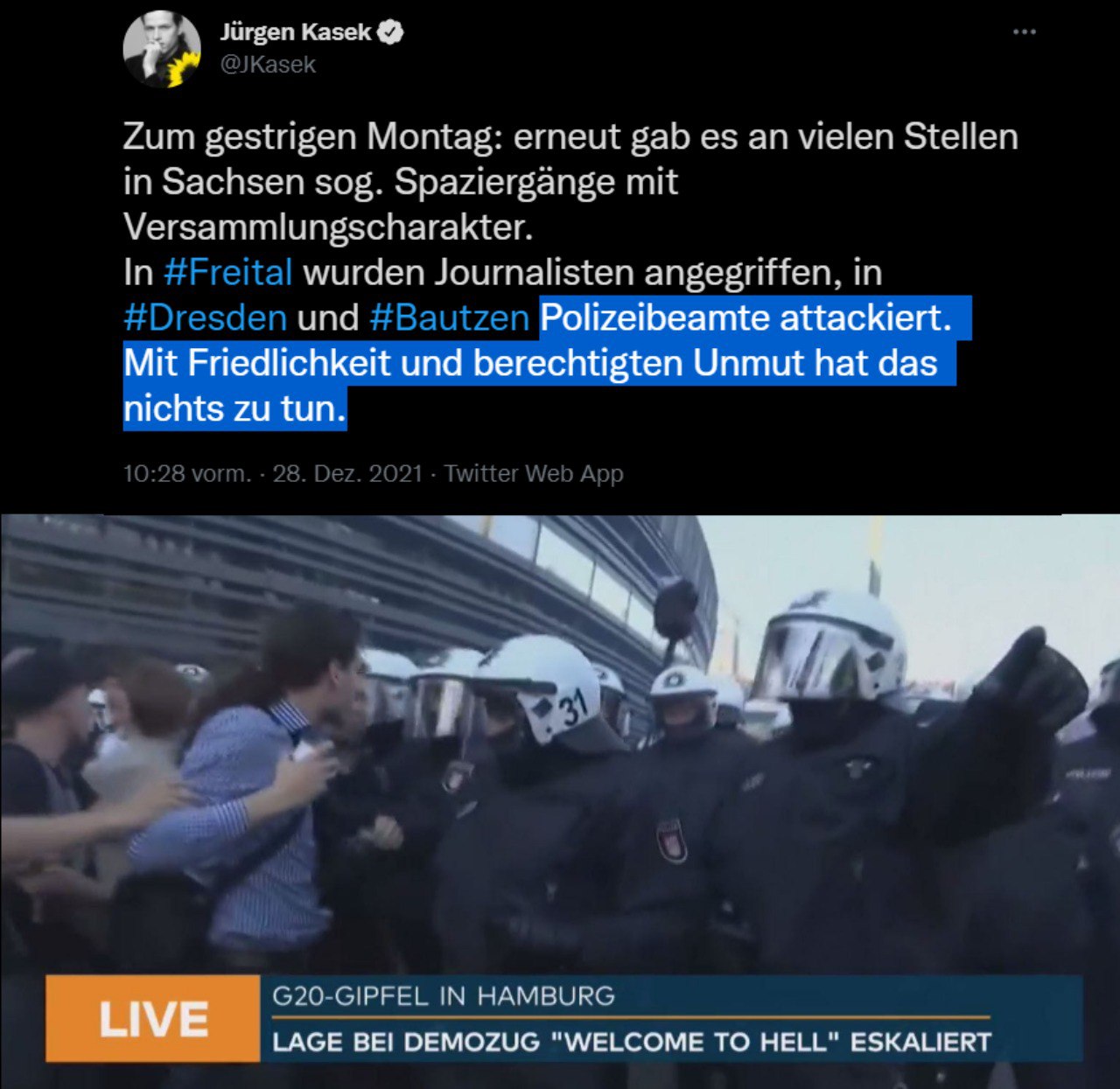 ​​Die bösen Rechten attackierten Polizeibeamte? Schockschwerenot, seht nur wie böse sie sind.