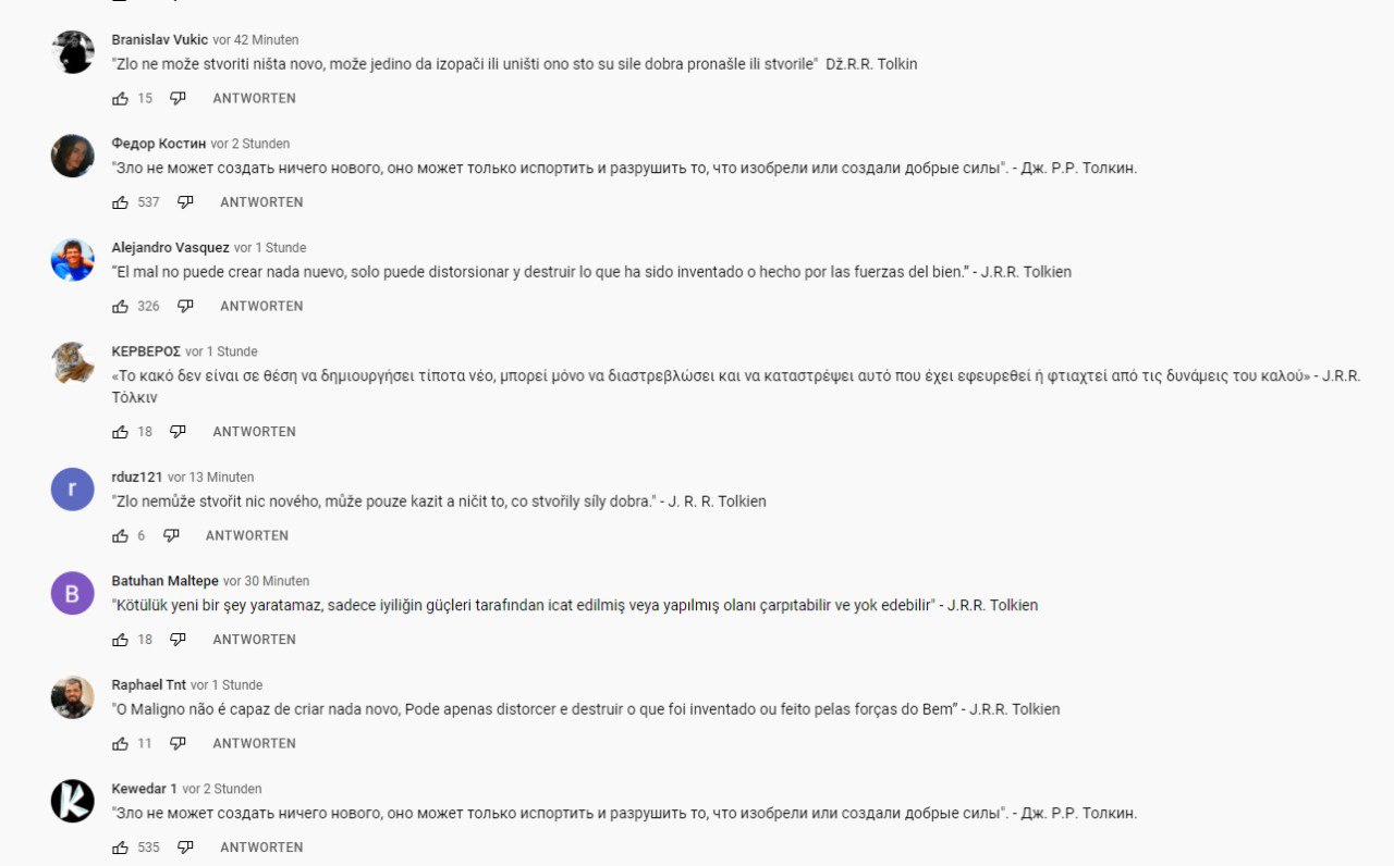 Alle Kommentare geben folgendes Tolkien-Zitat wieder: