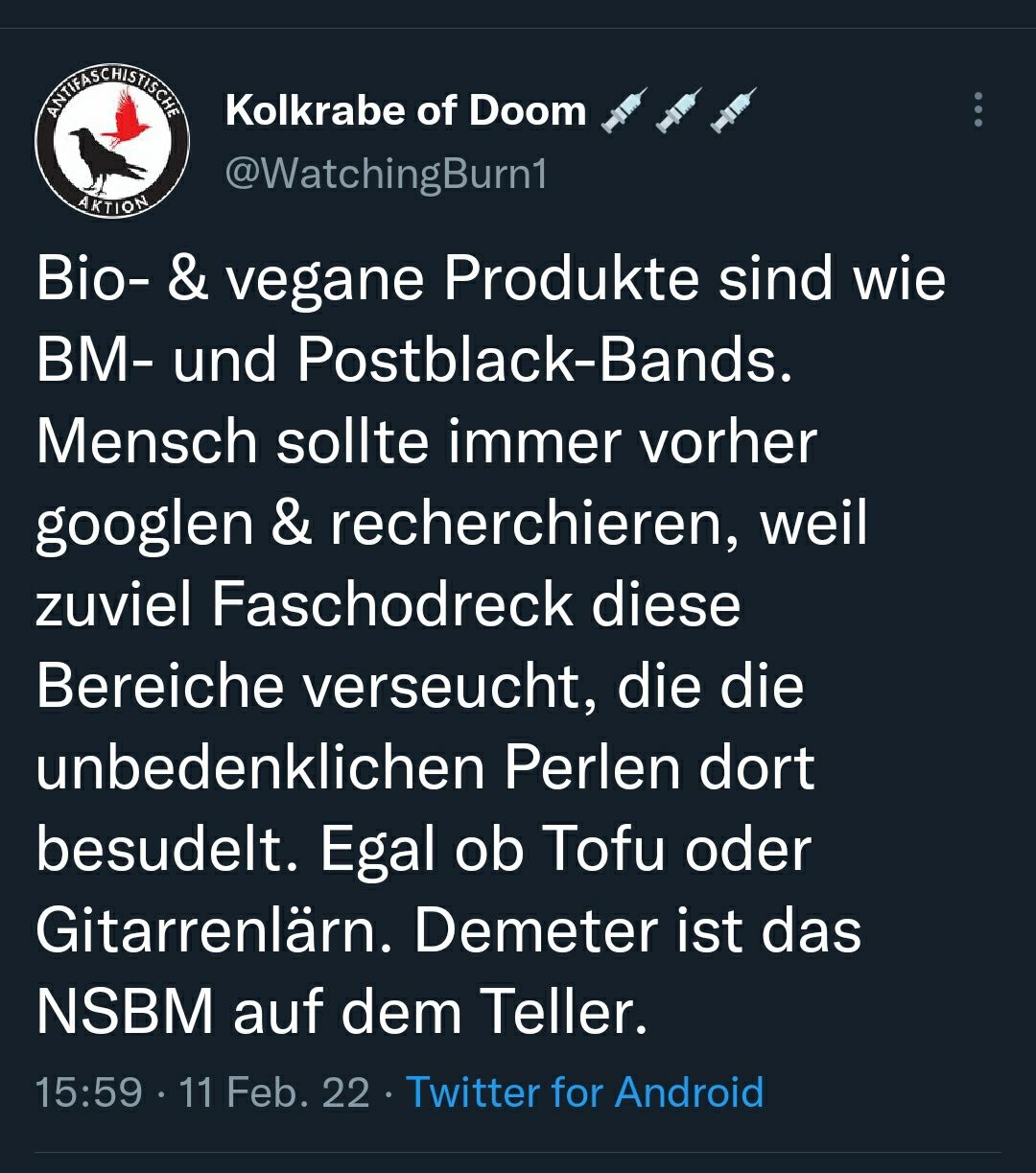 ​​Soja-Malte futtert Tofu von einem Hersteller mit falscher Gesinnung: Zack! Aus Soja-Malte wird Tofu-Ronny, der Migranten mit zu Baseballschlägern umfunktionierten Bambusrohren jagt!