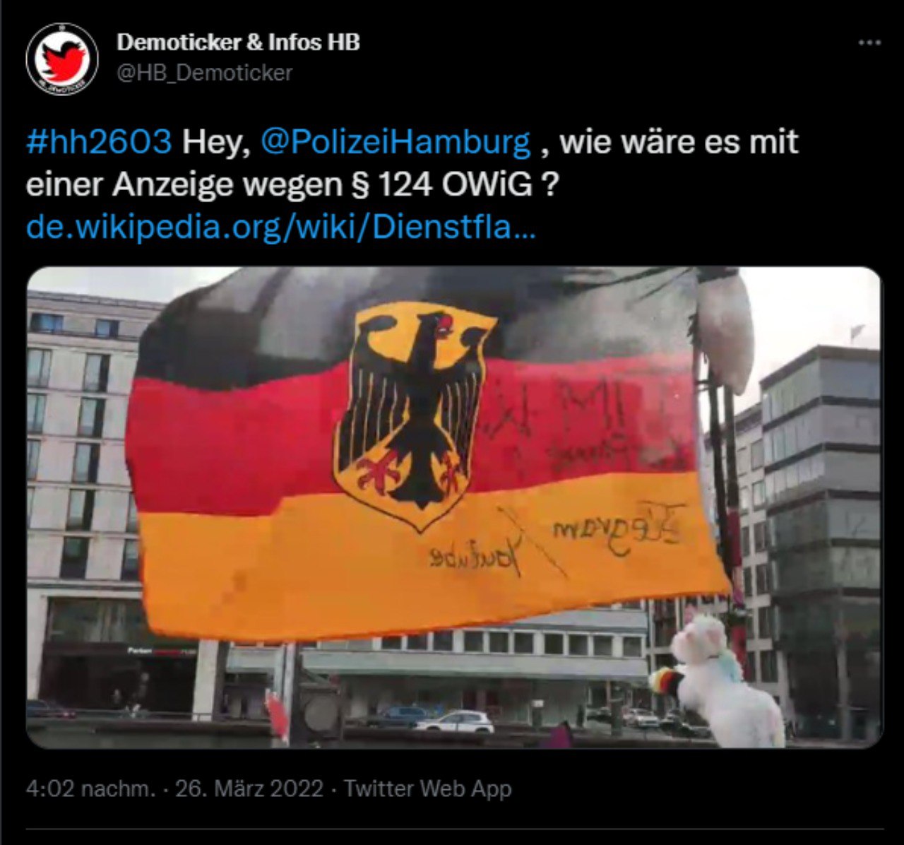 Auch Linke: "Hallo Polizei? Die bösen Querdenker verunglimpfen die Bundesflagge!"