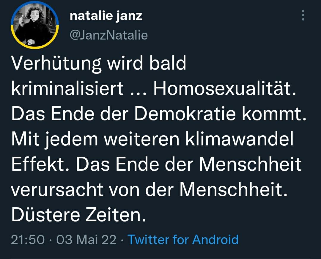 Almanweiber, die sich die Ukraine-Flagge in ihre Bio klatschen: "Männer sollten sich zum Thema Abtreibung heraushalten. Es betrifft sie nicht."