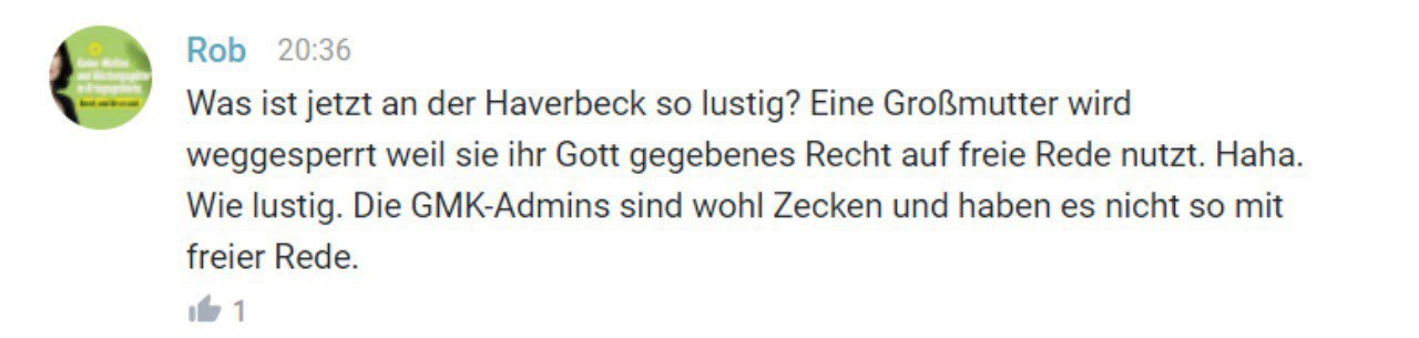 NSJWs mal wieder richtig mett. Pochen bei Haverbecks "Hitler dindu nuffin" auf MeInUnGsFrEiHeIt und lüften ein System, welches Systemkritiker nach Dachau deportierte oder ihnen gleich den Kopf abhackte (siehe Scholl). So ein System nicht so knorke finden macht Keule natürlich zu einem Zeckenkanal. lel.
