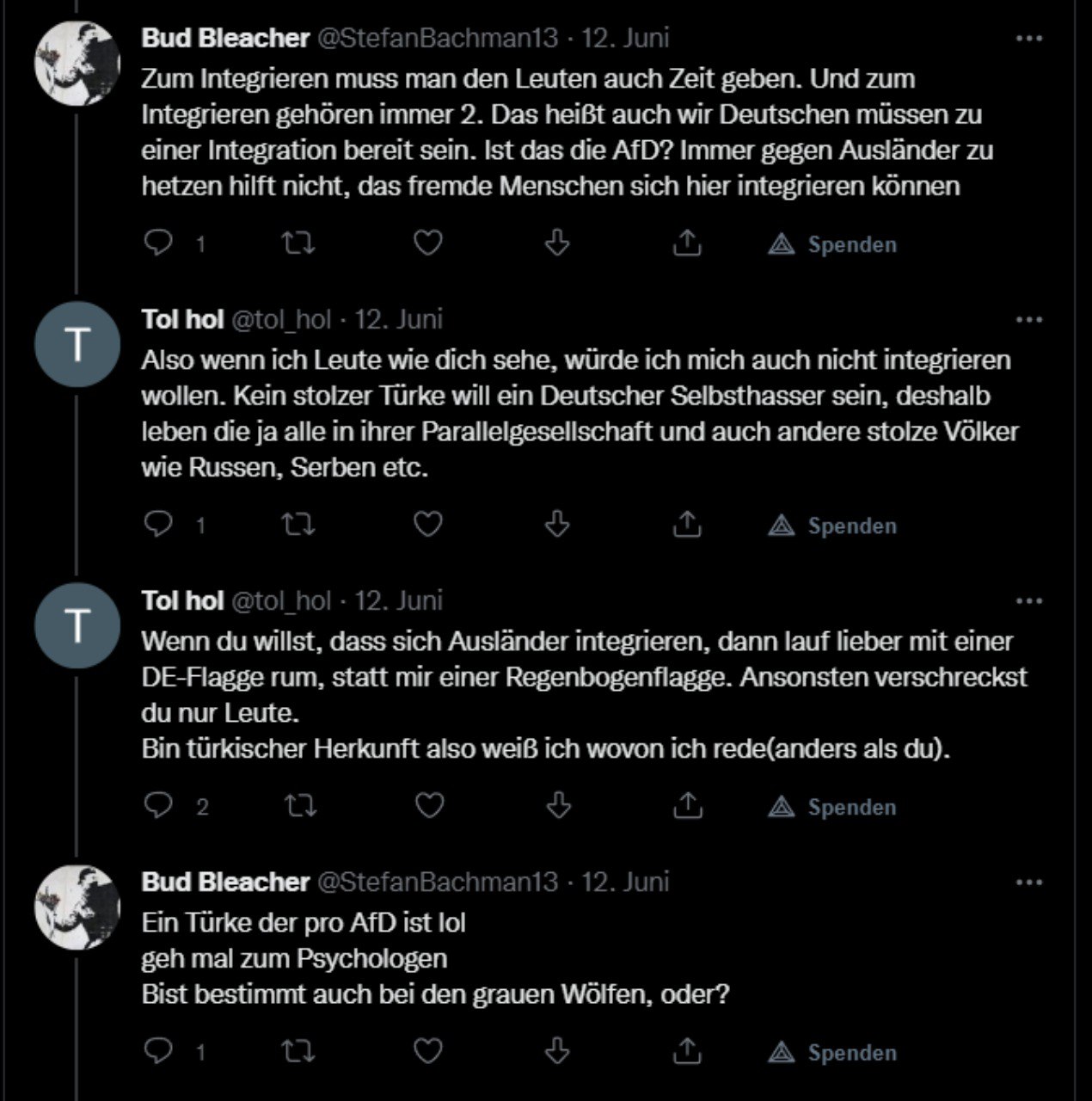 Alman: "lol du AfD-Wähler. Bist bestimmt bei Grauen Wölfen!!!"