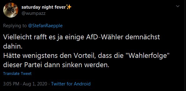 ββ"Die Guten" sehnen sich nach einer zweiten Welle mit vielen toten AfD-WΓ€hlern. Dies sind die Leute, die dich fΓΌr einen moralischen Untermenschen halten, wenn du nicht Links bist.