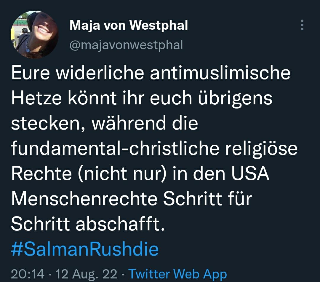 Während Salman Rushdie nach einem Messerattentat um sein Leben ringt, sorgen sich Almanweiber bereits um die wahren Opfer des Messerangriffs.