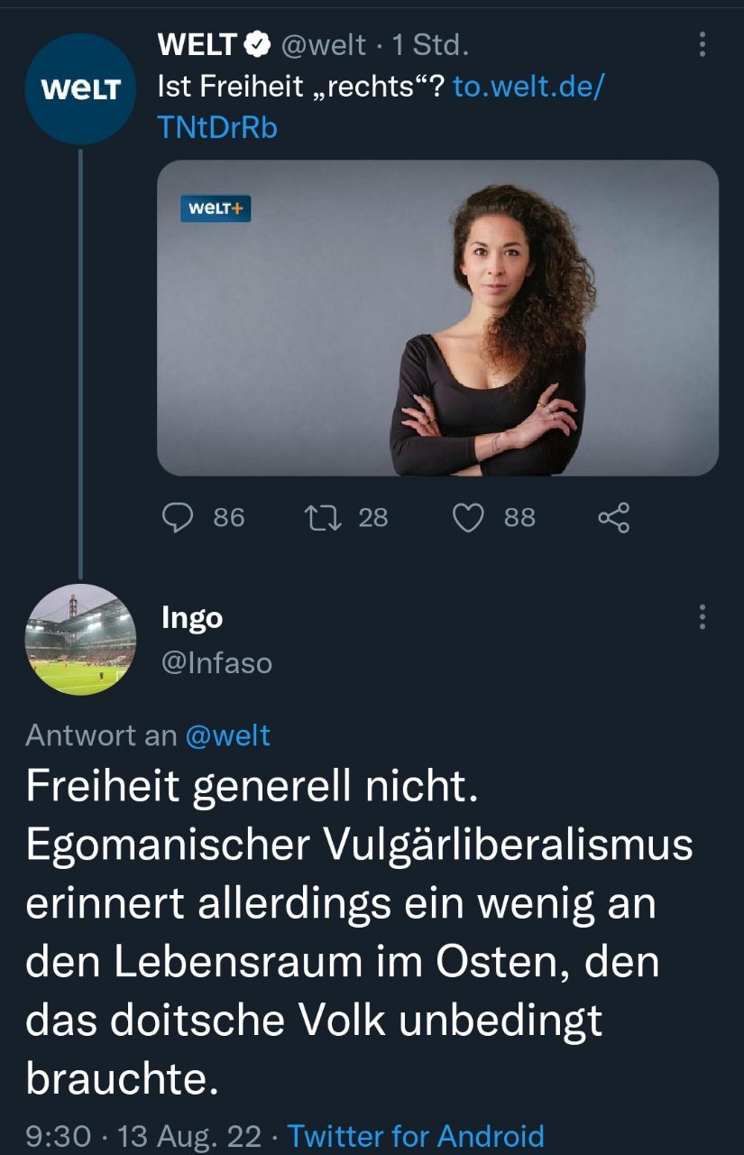 Wer kennt das nicht. Du lebst ohne staatliche Schikane, ohne Maulkorbzwang, ohne Zwangsimpfung und ohne linksgrüne Umerziehungsmaßnahmen und Schwupps! Schon rollen Panzer nach Warschau.