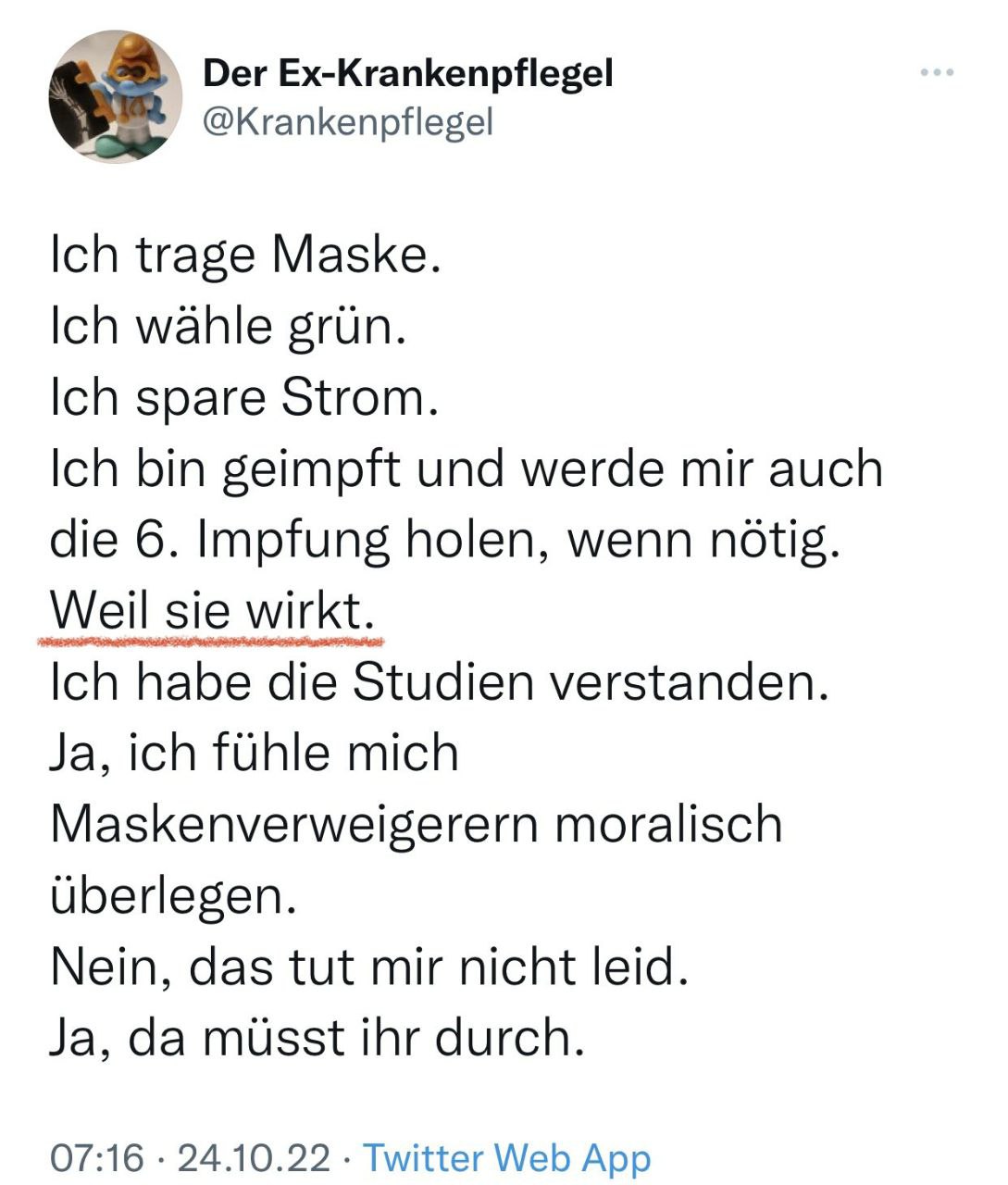 Ich bin intelligent, weil ich gehorche und ihr seid dumme Querdenker.