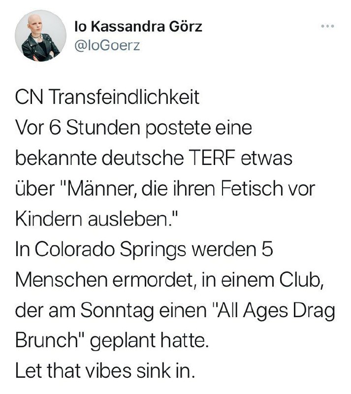 In Colorado gab es eine Schießerei mit 5 Toten in einem "LGBT"-Club. Wokistan ist sich einig: Deutsche Alt-Feministinnen ('TERFs') sind Schuld.