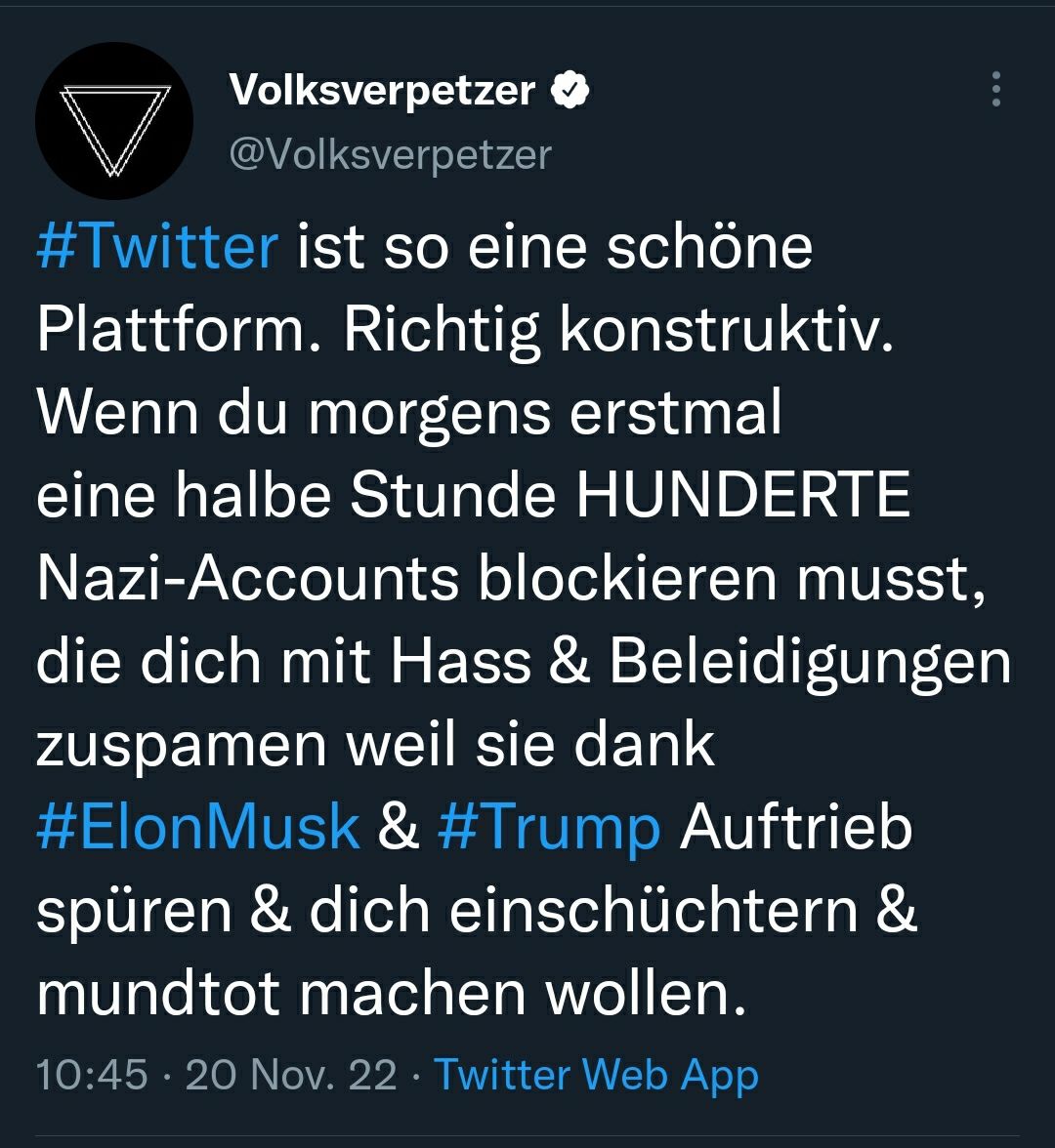 Volksverblöder am Brüllheulne, weil sie jetzt, wo nicht jeder Nichtlinke wegzensiert wird, so langsam realisieren wie beliebt sie wirklich sind.