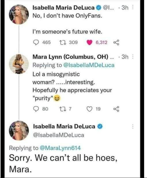 Frauenhassende Verfechterin des Patriarchats, wer nicht auf Onlyfans Wurstfach zeigt.