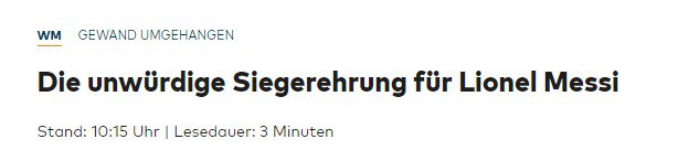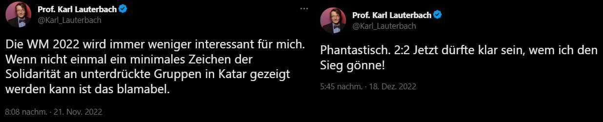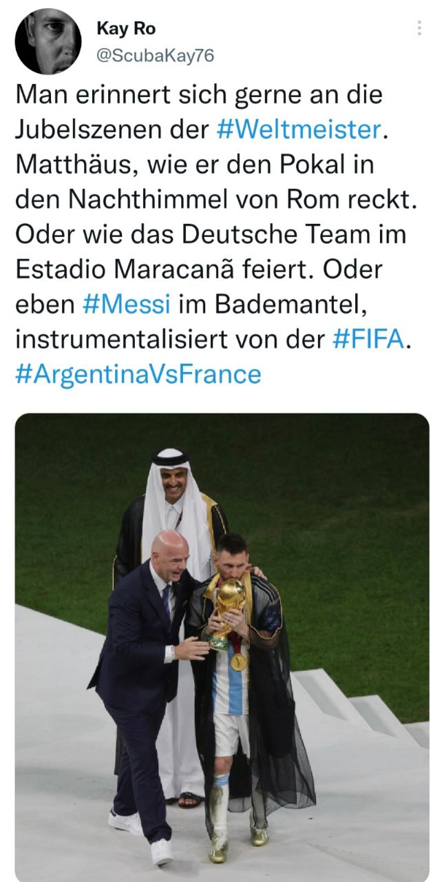 Sinnbild für den Alman. Alle boykottieren die WM, um sich gegenseitig ob ihrer moralischen Überlegenheit die Eier zu kraulen. Das WM-Finale wird dann doch geschaut.