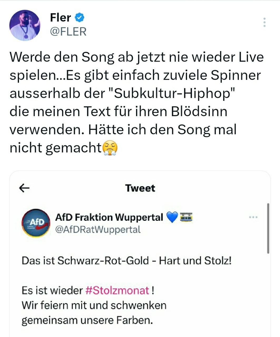 Das brutale Gangsterleben beendet, sobald AfD-Accounts deine Texte zitieren.