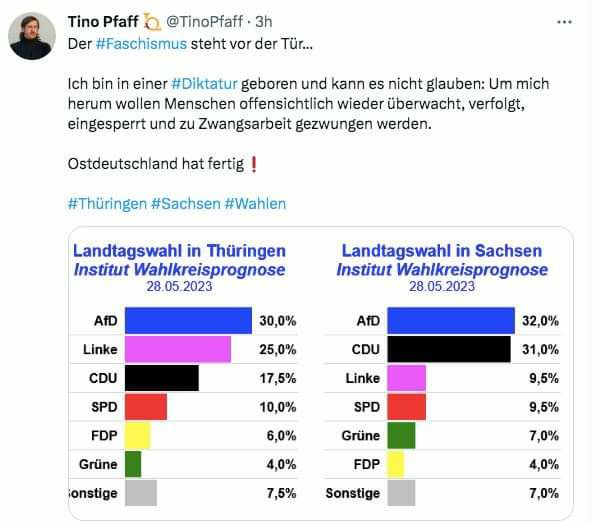 Bolschewisten mal wieder am Brüllheulne, weil der Teil Deutschlands, der 40 Jahre unter Bolschewismus leiden musste, keinen Bock auf Bolschewisten hat.