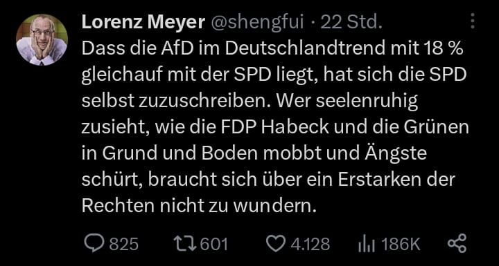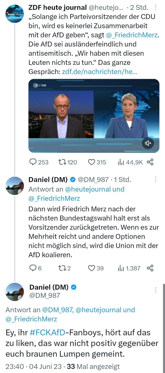 Man muss den Alman verstehen. Der Alman hält jeden für rechtsextrem, der von AfDlern Applaus bekommt. Da kann man schon mal gereizt wirken, wenn man derjeniche ist