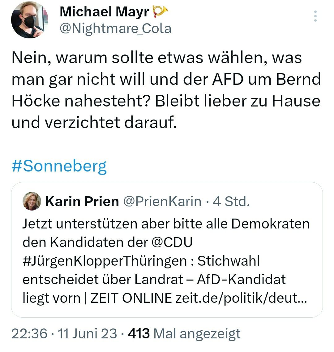 Wer Bock auf linkes Brüllheulne hat, gibt auf Twitter "Thüringen" und "Sonneberg" in die Suche ein.