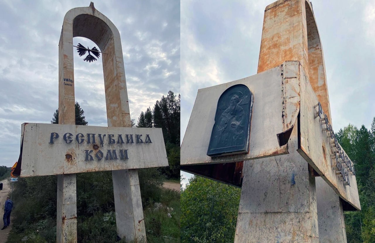 А вот так выглядит граница Архангельской области и Республики Коми. Там должна быть обновлённая стела с приветственной надписью: "Добро пожаловать в Республику Коми", но её там нет, потому нихрена не добро пожаловать. Такой позор Главе, Минстрою и Управтодору. Избавились от дороги, передав её в федеральную собственность, это здорово, но стела - лицо региона. Испанский стыд.