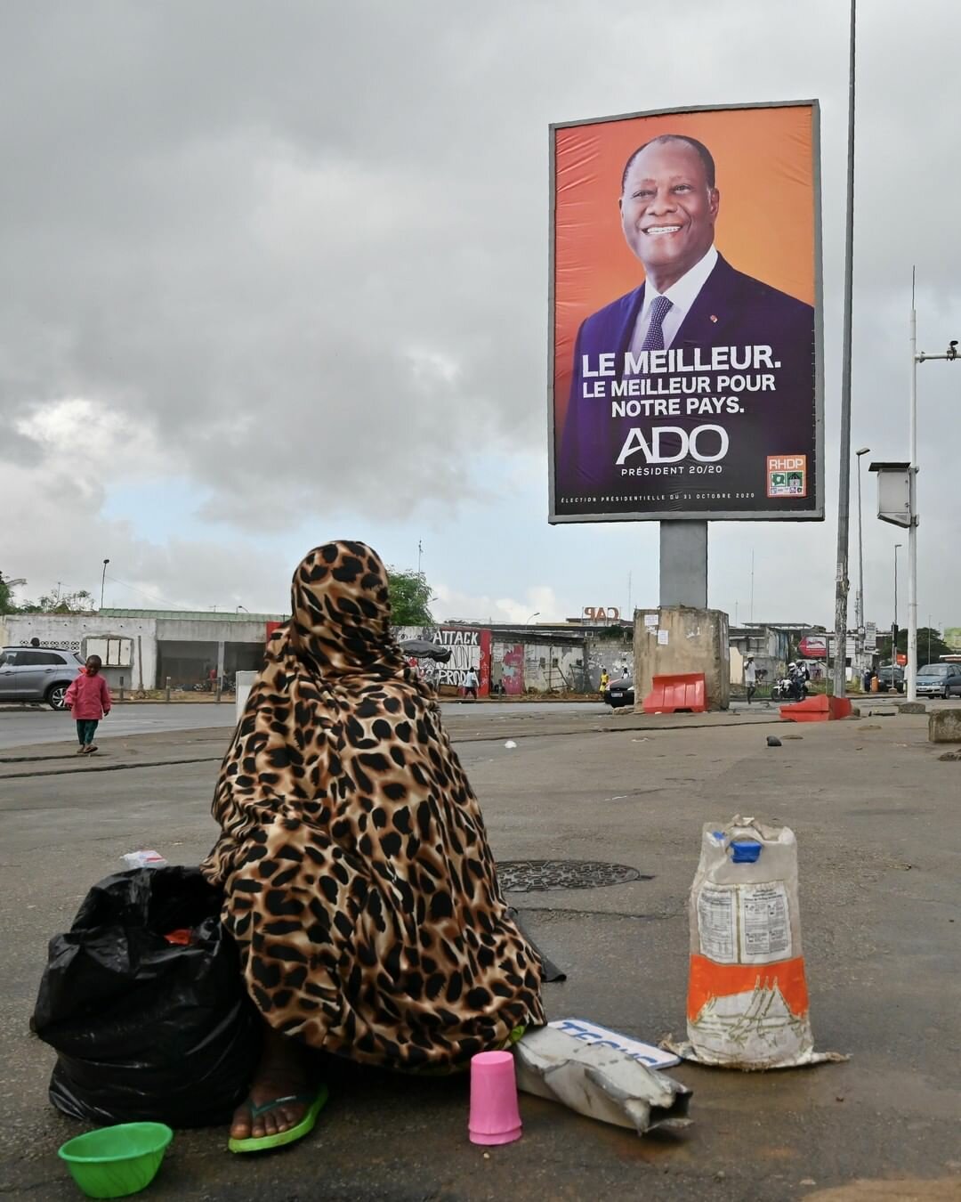На фото: баннер с действующим президентом Кот-д'Ивуара Алассаном Уаттарой в Абиджане.