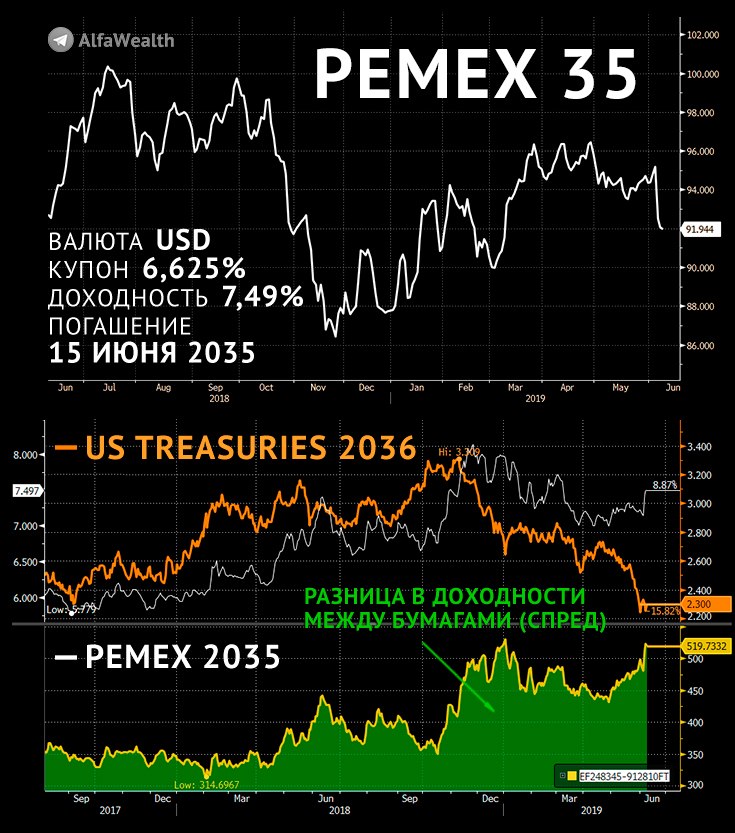 Мы пользуемся локальной коррекцией цен – покупаем облигации Pemex 2026 года и 2035 года погашения, ожидаем роста цены на горизонте нескольких месяцев #ПИФ_Еврооблигации.
