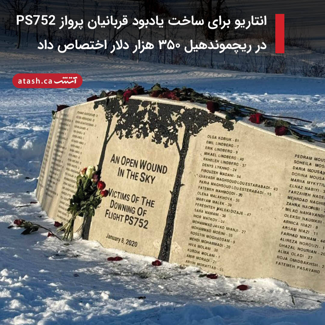 🔻 انتاریو برای ساخت یادبود قربانیان پرواز PS752 در ریچموندهیل ۳۵۰ هزار دلار اختصاص داد - آتش و آتش تورنتو