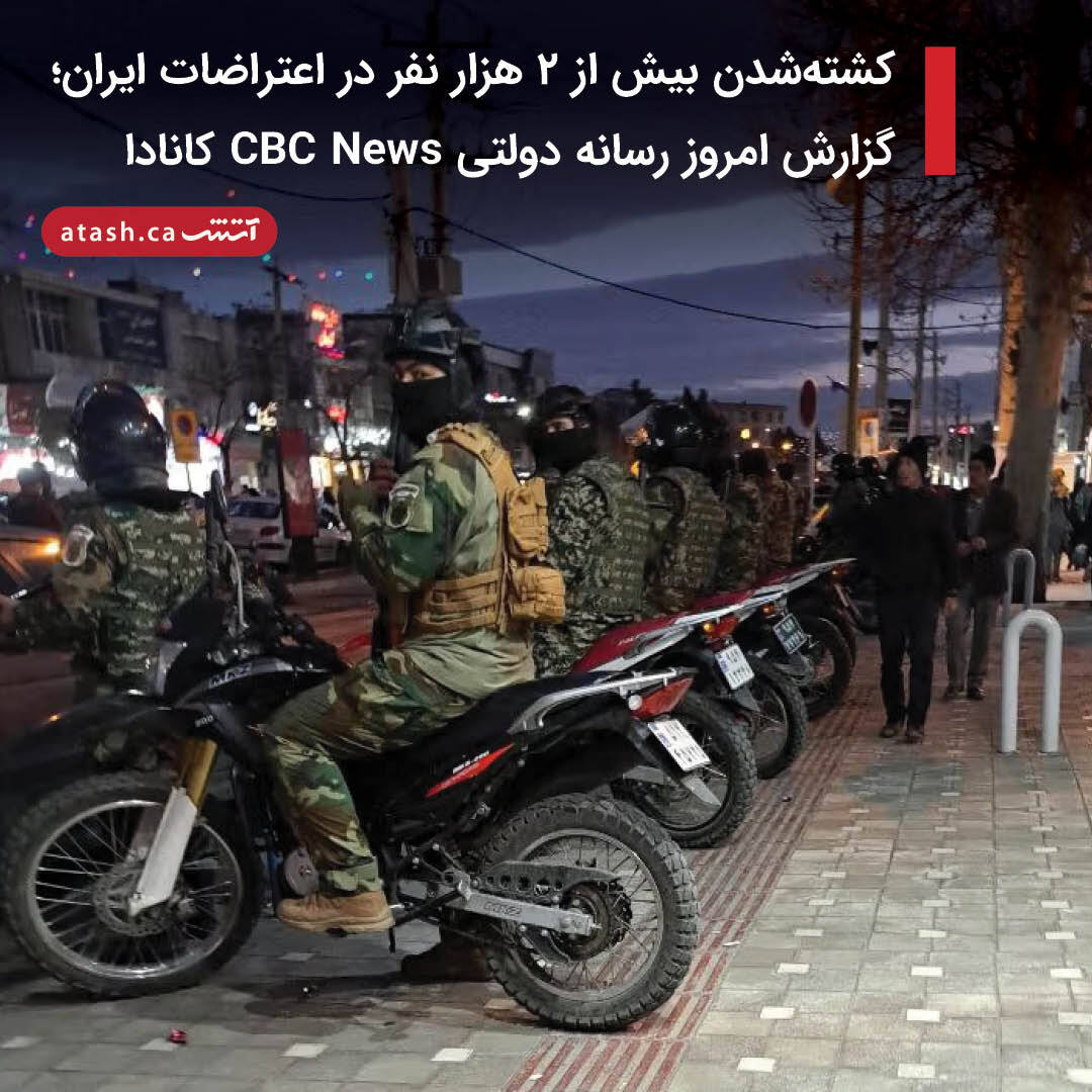 🔻 کشتهشدن بیش از ۲ هزار نفر در اعتراضات ایران؛ گزارش امروز رسانه دولتی CBC News کانادا