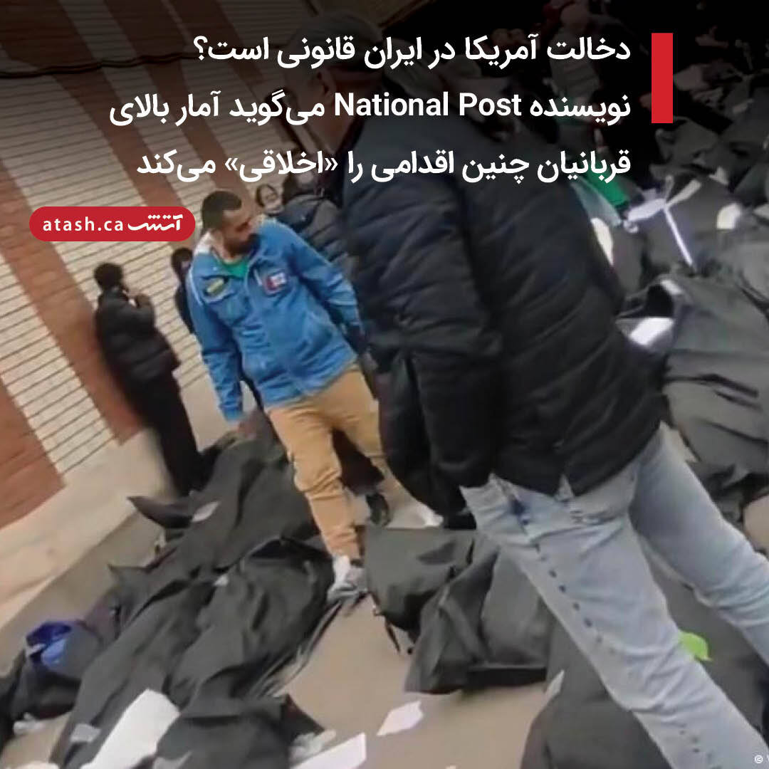🔻 دخالت آمریکا در ایران قانونی است؟ نویسنده National Post میگوید آمار بالای قربانیان چنین اقدامی را «اخلاقی» میکند