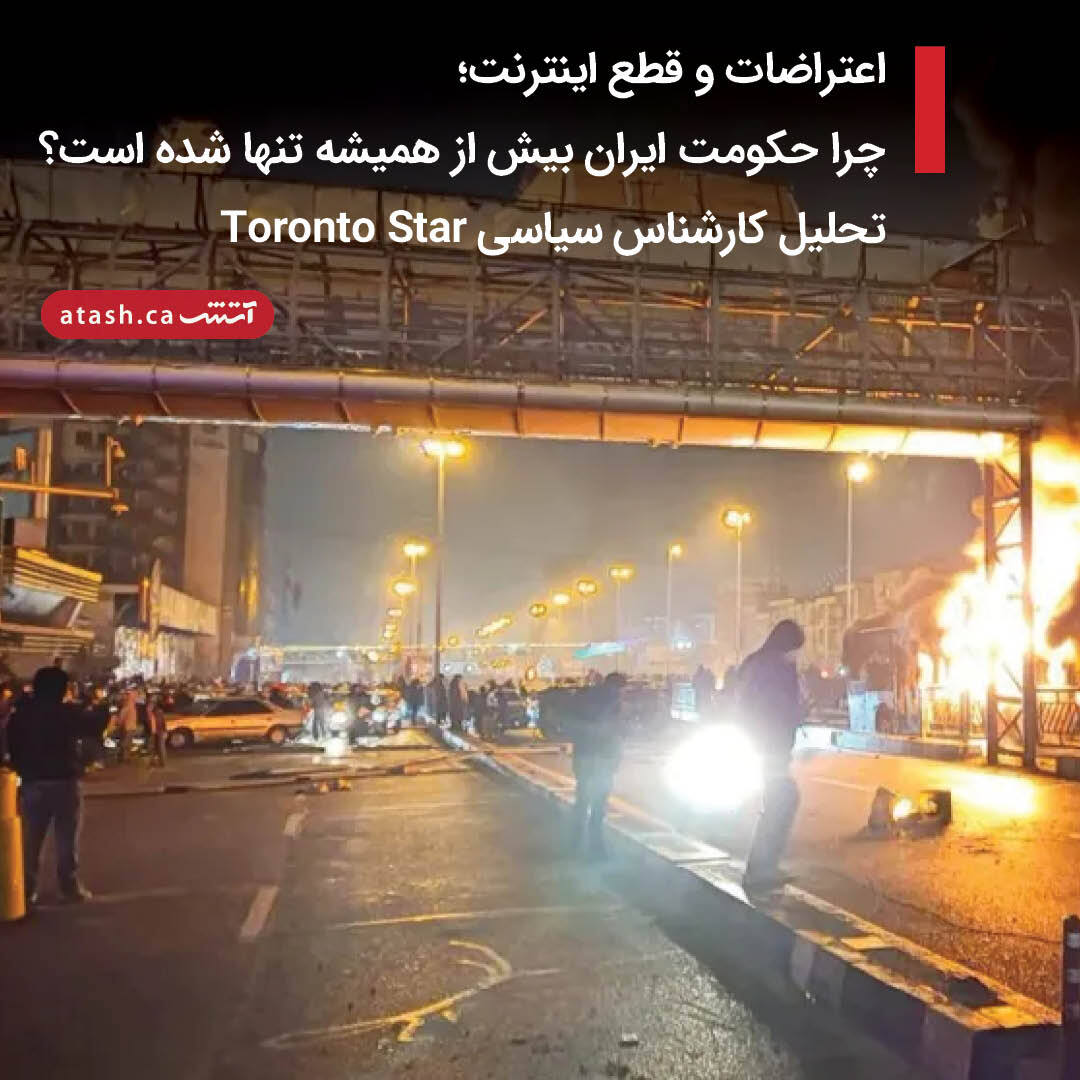 🔻 اعتراضات و قطع اینترنت؛ چرا حکومت ایران بیش از همیشه تنها شده است؟ تحلیل کارشناس سیاسی Toronto Star