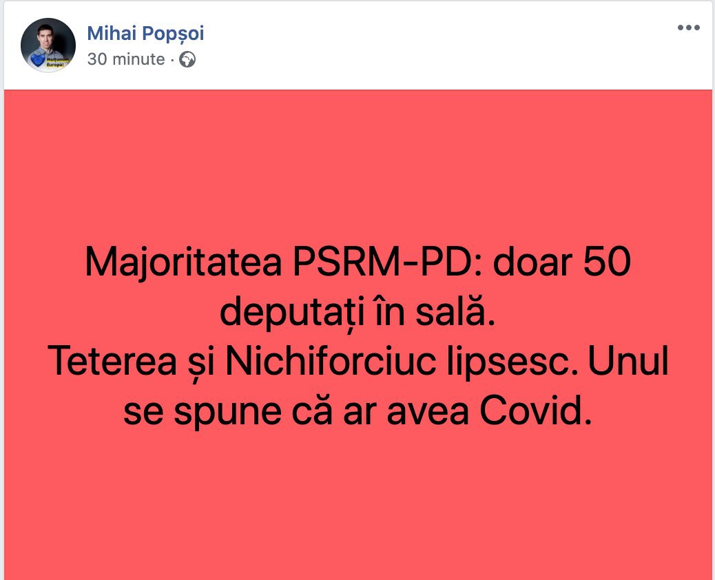 ❗️ Asta pentru că de la ședință lipsesc deputații Oleg Teterea și Eugeniu Nichiforciuc. Dacă primul și-a dat demisia din funcția, alegându-și un loc călduț la Chișinău-Gaz, despre Nichiforciuc se spune că ar fi infectat cu #COVID19. Cel puțin asta susține vicepreședintele Parlamentului, Mihai Popșoi.