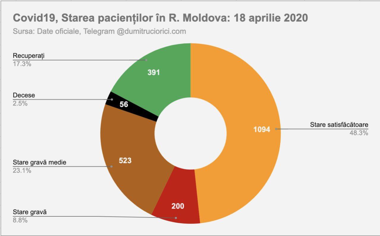 🚩 Statistica referitor la #Covid19 în Moldova prezentată azi de autorități am pus-o într-un grafic și arată ea așa: