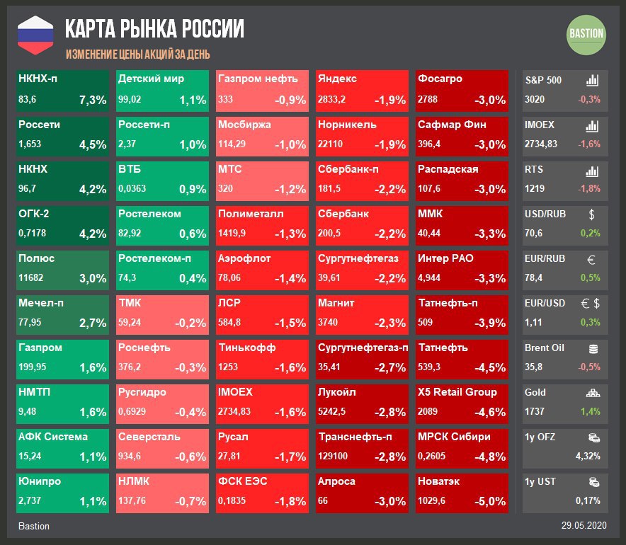 Американский рынок закрылся снижением: индекс S&P500 потерял 0,2%. Вновь пугает Трамп: сначала пригрозил закрыть Twitter на территории США, затем анонсировал пресс-конференцию по Китаю в пятницу.