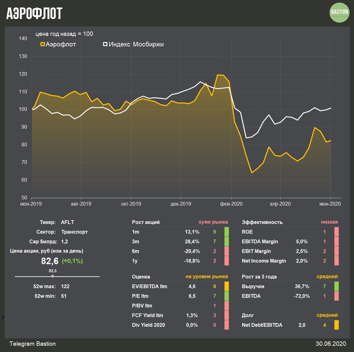 Менеджмент продолжительный период обещает то вернуться к прежней дивполитике, то принять новую. Ни того, ни другого не происходит, как и существенного снижения долга. Тем не менее, рынок ждет щедрых выплат от компании, что отражается в росте стоимости акций за год лучше рынка. Система не проходит в активные портфели Bastion.