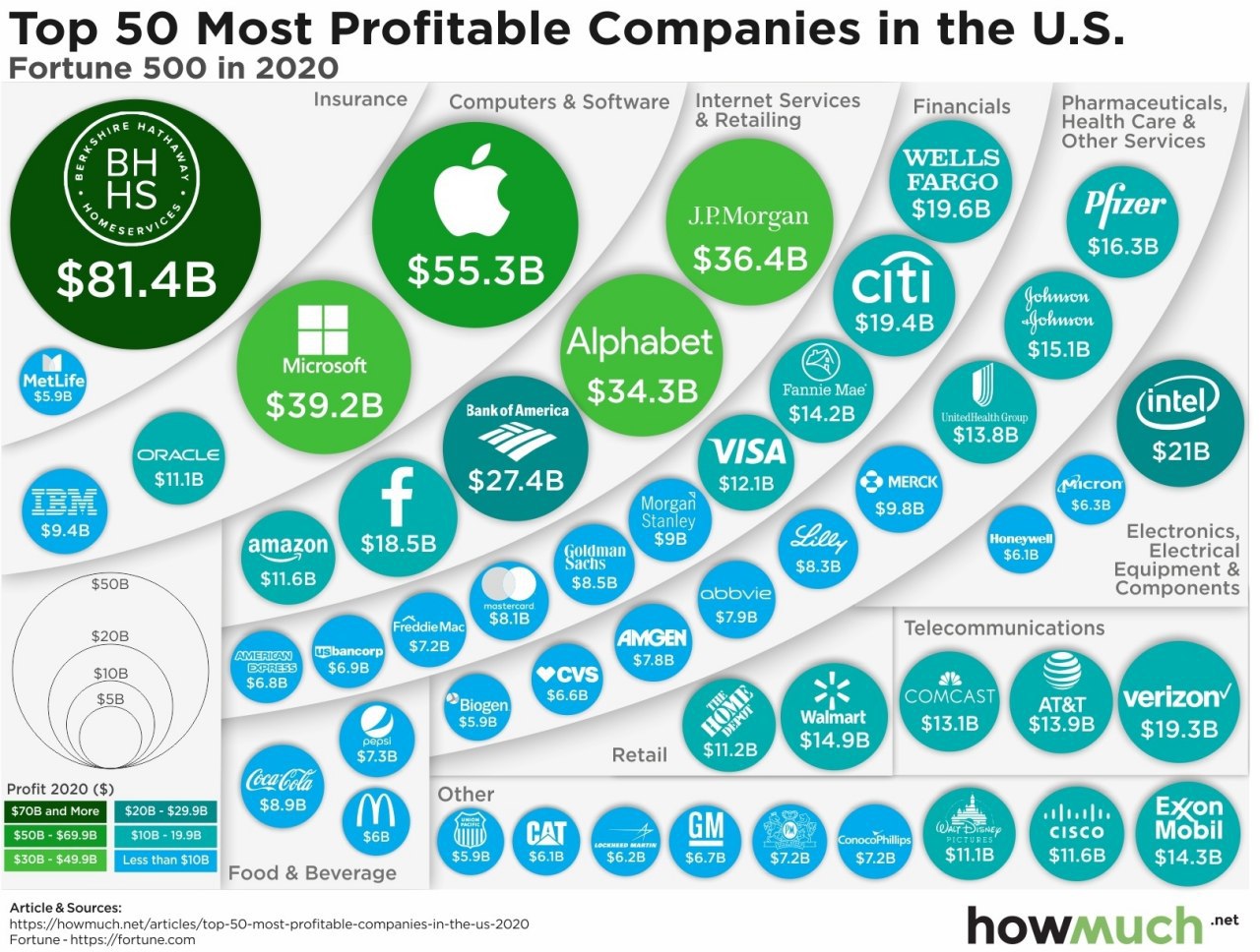 📊 Самые прибыльные компании США за 2019 год, $млрд