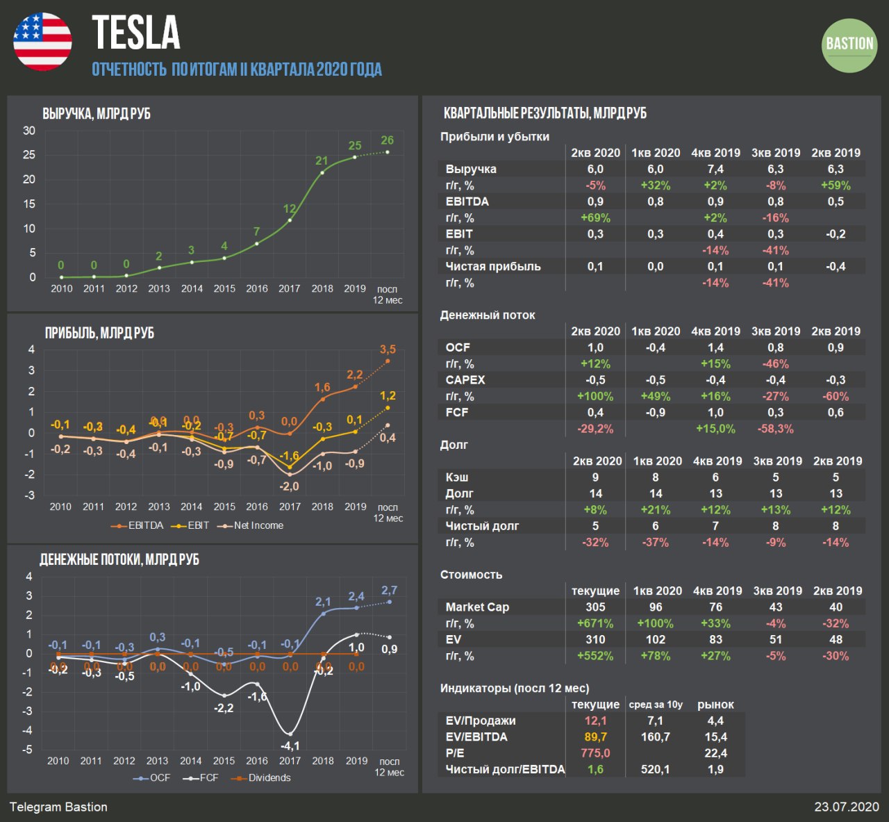Самая дорогая автокомпания мира снизила выручку во II кв 2020 на 5% г/г до $6 млрд. При этом падение издержек позволило получить $100 млн чистой прибыли против убытка в $408 млн за аналогичный период годом ранее.