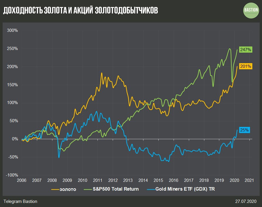 ​​🥇 Доходность золота и акций золотодобытчиков