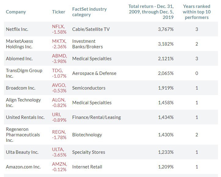 🔥 Компании которые выиграли десятилетие. Топ-10 акций по доходности в США с конца 2019 года.