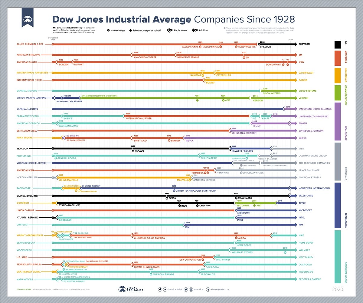 ​​📊 Каждая компания в индексе Dow Jones c 1928 года