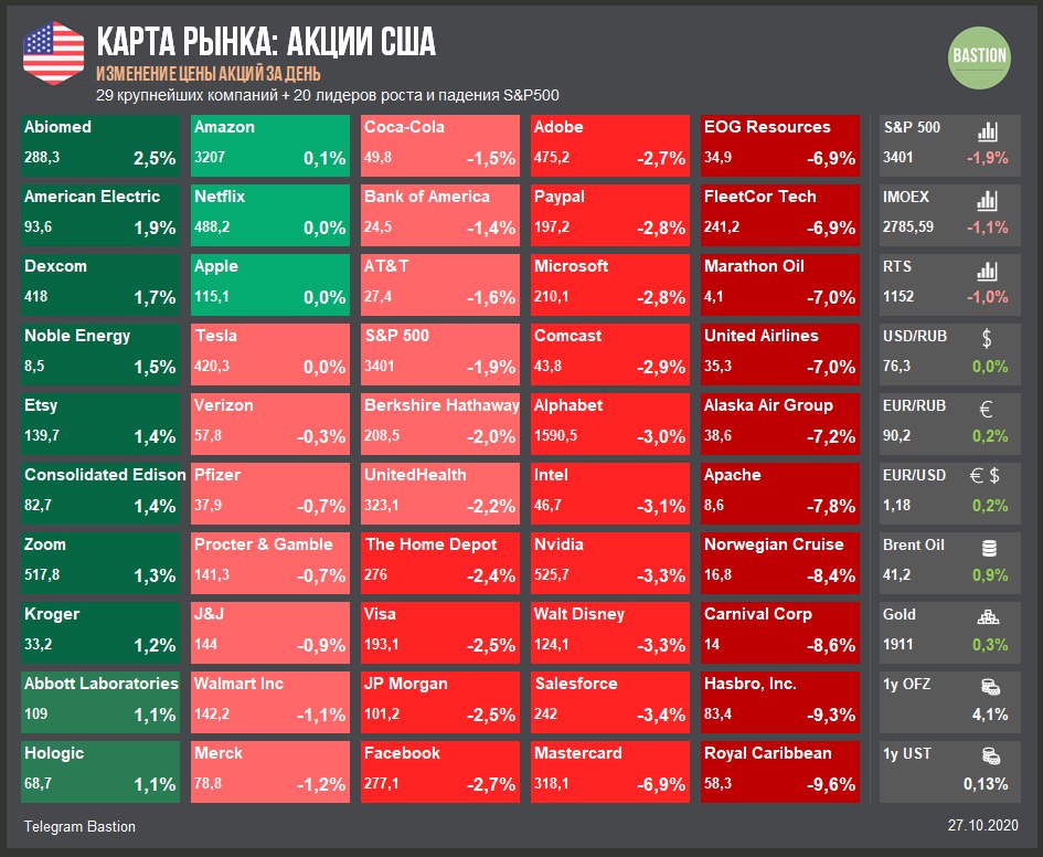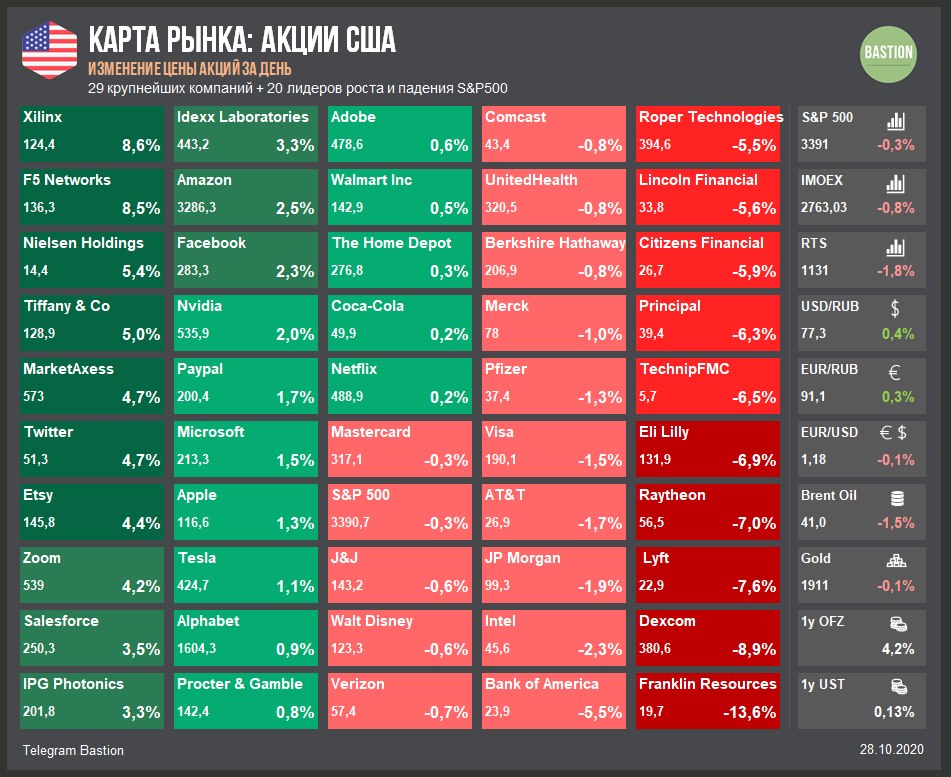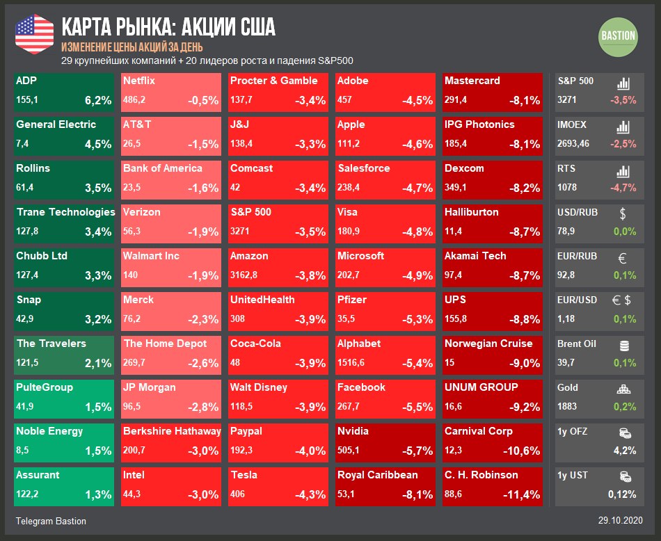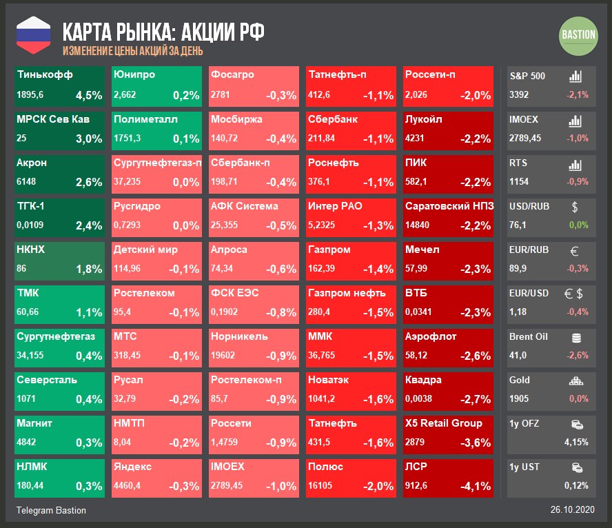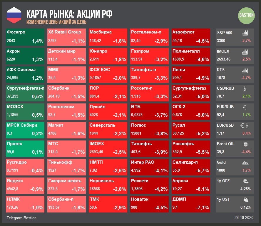 ▫️Индекс Мосбиржи сегодня -2,5%. Падение рынков наблюдается во всем мире. Если хочется найти причины, то это всегда можно сделать - вторая волна коронавируса, демократическая волна в США или отсутствие новых стимулов.
